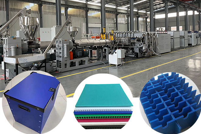 聚丙烯建筑模板機械的生產(chǎn)工藝是什么? 青島塑科機械有限公司聚丙烯建筑模板機(又稱聚丙烯模板生產(chǎn)線、聚丙烯建筑模板機、聚丙烯中空建筑模板生產(chǎn)線)主要由單螺桿擠出機、擠出模具、定型機、冷卻支架、拖拉